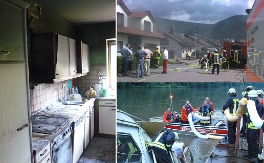 Küchenbrand in Ersheim - Boot vor dem Sinken bewahrt (Fotos: Feuerwehr)(hr) Zwei Einsätze beschäftigten in den vergangenen Tagen die Freiwillige Feuerwehr Hirschhorn.