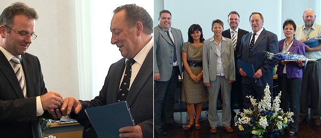 Den Ehrenring der Stadt Eberbach in Gold erhielt heute der ausscheidende Stadtrat Karl Seib, und zwar in Würdigung seines kommunalpolitischen Lebenswerks. Seib war im April 1992 für die ausscheidende CDU-Stadträtin Irmgard Baur in den Rat nachgerückt. Bei den Kommunalwahlen 1994, 1999 und 2004 wurde er jeweils wiedergewählt. Seib war Mitglied im Bau- und Umweltausschuss, im Werksausschuss, im Umlegungsausschuss sowie in Kommissionen und anderen Gremien. Zuvor war er seit 1989 beratendes Mitglied im Werksausschuss gewesen.