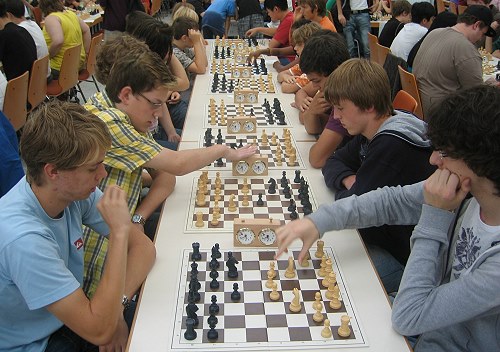 Die Schach-AG des Hohenstaufen Gymnasiums Eberbach (HSG) durfte bei diesem Event natürlich nicht fehlen. Mit zwei Mannschaften unter der Leitung von Herrn Oberstudienrat Bernhard Schell machte man sich erwartungsvoll auf den Weg. Für die zweite Mannschaft, mit den Spielern Markus Schmitt, Felix Jung, Manuel Jung und Rico Meyer, galt es in erster Linie, Spielpraxis zu sammeln und zu lernen, ein solches Großturnier mental und konditionell durchzustehen. Dies gelang den Jugendlichen mit großem Erfolg.