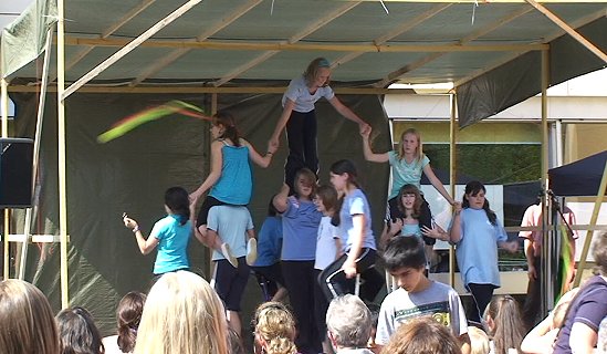 Großes Programm beim ersten Stadtteilfest Artistikshow der Realschule. (Foto: Hubert Richter)Mehr Bilder (Klicken zum Vergrößern):