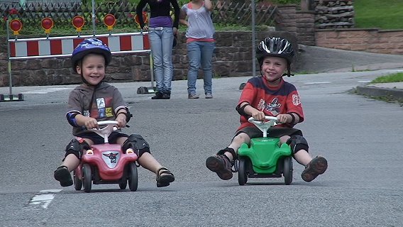 Großes Programm beim ersten Stadtteilfest Bobby-Car-Rennen auf der gesperrten Pestalozzistraße. (Foto: Hubert Richter)Mehr Bilder (Klicken zum Vergrößern):