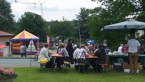 Auf der Bühne im Schulhof fand heute Abend ein Konzert verschiedener Schönbrunner Chöre und des Handharmonika-Clubs Haag statt. Zuvor stand am Nachmittag eine Tanzshow der Jazz-Dance-Abteilung des SV Moosbrunn auf dem Programm. Die Kurpfälzer Gleitschirmflieger, die auf dem Schleppgelände zwischen Schönbrunn und Haag morgen wieder Tandemflüge anbieten, spendeten der Gemeinde heute 1.000 Euro, den Erlös aus der Eröffnungsveranstaltung der Gleitschirmstrecke im März (wir berichteten). Das Geld soll in den gemeinnützigen "Fonds fürs Leben" fließen. Auch der Erlös aus der Gesamtveranstaltung "Lebendiges Schönbrunn" ist für gemeinnützige Zwecke gedacht, nämlich für den Ortsverein des DRK, die kommunalen Kindergärten und die örtliche Grundschule.