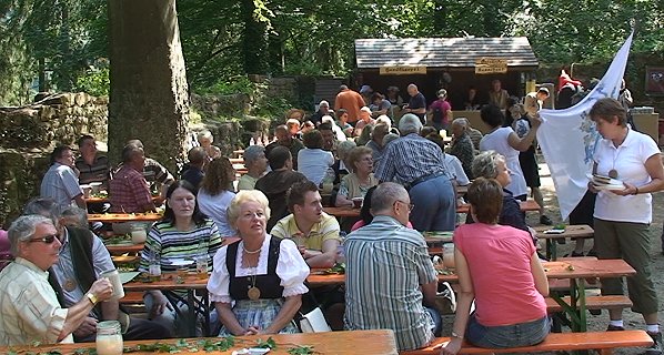 Um 11 Uhr heute Vormittag wurde das Fest zu den Klängen des Eberbacher Fanfarenzugs eröffnet: "Herold" Dieter Müller proklamierte die Feierlichkeiten in historischem Gewand und übergab die Urkunde des "Ludwig von Stolzeneck" an "Burgvogt" und Ortsvorsteher Hans Leistner. In Vertretung von Bürgermeister Bernhard Martin begrüßte Stadtrat Günter Wiedemer die bereits zahlreich erschienenen Festgäste. Neben einem zünftigen Bewirtungsangebot gibt es zur Unterhaltung mittelalterliche Vorführungen der Gruppe "Fellow-Ship", und Christoph Ries sorgt als Hofnarr für Belustigung. Auch die Jagdhornbläser spielen.