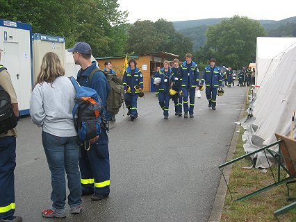 Vom Ortsverband Eberbach nehmen 16 Jugendliche im Alter von 10 bis 17 Jahren an diesem Lager teil, von denen neun Jugendliche heute Nachmittag auch die Prüfung für das bronzene Leistungsabzeichen ablegen werden. Betreut wird die Eberbacher Gruppe von Björn Fellhauer, Christian Gerbig, Michael Becker und Janina Schulz. Die Jugendlichen des Eberbacher Ortsverbandes haben in dieser Woche eine Kanufahrt geplant sowie Betriebsbesichtigungen bei der AVR in Sinsheim, beim Großkraftwerk in Mannheim sowie bei dem milchverarbeitenden Unternehmen Campina in Heilbronn.