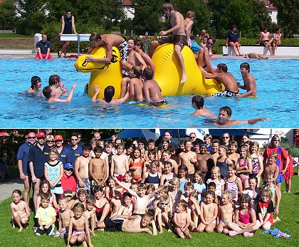 Das Bäderpersonal und die Helfer der DLRG hatten sich wieder einiges einfallen lassen, um die zahlreichen Mädchen und Jungs zu unterhalten. Nelly und Iceberg, die beliebten Schwimmtiere, waren natürlich zur Freude aller wieder im Wasser.