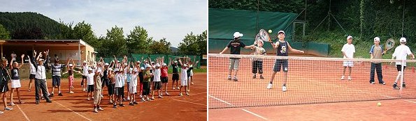 Fast 40 Kinder nahmen dieses Angebot an und tummelten sich bei strahlendem Sonnenschein unter fachmännischer Anleitung auf den Tennisplätzen.