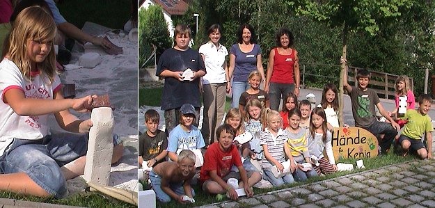 Ferienspaß mit Stein und Staub (Fotos: Claudia Richter)(cr) Kreatives Gestalten aus Porenbeton war gestern beim Eberbacher Ferienspaß angesagt. Auf Einladung des Vereins "Hände für Kenia" arbeiteten unter Anleitung der Vereinsmitglieder Andrea Koß, Ulrike Riedl und Angelika Wörner fast 20 Kinder zwischen acht und 12 Jahen an großen und kleinen Materialstücken.