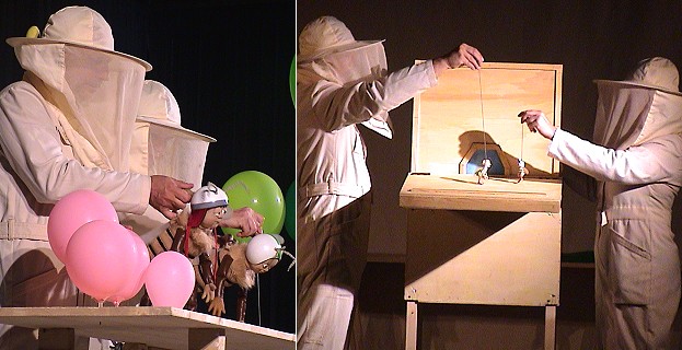 Verkleidet in einem Imker-Outfit ließen die beiden Puppenspieler ihre Tischfiguren rund um die Kultfigur Maja zum Leben erwachen und zwar so spannend, dass so mancher kleine Gast schutzsuchend auf Omas oder Mamas Arm die Erlebnisse der Bienenkinder aus sicherer Entfernung kritisch beäugte. Am Ende der Geschichte aber dankten die großen und kleinen Besucher mit kräftigem Applaus für die gelungene Vorstellung.