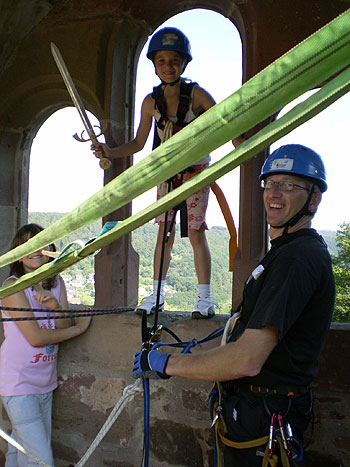 Ziel des Nachmittags war es, dass sich die Kinder am Ende selbständig aus der über 10 Meter hohen Wand der Minneburg abseilen können.