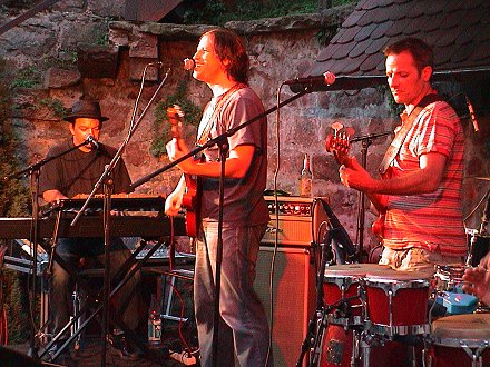 Lava kochte Pop- und Rockklassiker neu auf Stephan Keller, Alex Auer und Rolf Breyer von "Lava" (v.l.). (Foto: Claudia Richter)(cr) Eine außergewöhnliche Coverband gastierte am vergangenen Freitag auf Einladung des Kulturlabors im Innenhof am Pulverturm.