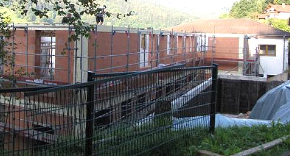 Wie die Stadtverwaltung Hirschhorn meldet, sind die Rohbauarbeiten schon weit gediehen. In den nächsten Tagen soll mit Zimmererarbeiten begonnen werden. Am 28. August sollen ein Großteil des Dachstuhls und die Decke über dem Obergeschoss fertig sein, so dass Richtfest gefeiert werden kann.