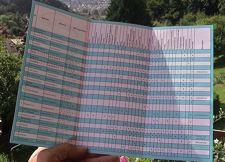 Faltblatt für die Einkaufstour in der City Wo gibt es was? Kreuzchen weisen den Weg zu den Lebensmitteln in der Innenstadt. (Foto: Hubert Richter)(hr) Unter dem Titel "Lebensmittel in der Innenstadt" hat die Stadtverwaltung einen handlichen Einkaufsführer für die tägliche Grundversorgung in Eberbach herausgegeben.