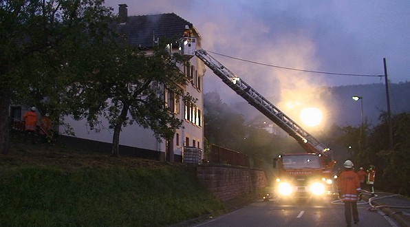 Vermutlich gegen 5.15 Uhr dürfte das Feuer im ersten Obergeschoss eines Hauses in der Baumannstraße aus bislang ungeklärter Ursache ausgebrochen sein. Die Abteilung Friedrichsdorf der Freiwilligen Feuerwehr Eberbach war rasch mit zwölf Mann am Brandort, ein Löschzug der Abteilung Stadt folgte kurz darauf. Die rund 60 Helfer der Feuerwehr hatten den Brand, der sich inzwischen auf das Dachgeschoss augedehnt hatte, schnell unter Kontrolle. Zur Unterstützung waren Feuerwehrkräfte aus den Hessenecker Ortsteilen Kailbach und Schöllenbach im Einsatz.