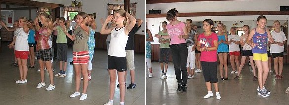 Zum Aufwärmen stellten sich die Kinder zuerst im Kreis auf und es wurden die Schritte des griechischen Volkstanzes Sirtaki einstudiert. Anschließend wurde es mit dem Sommerhit von 1996 Macarena schon ein wenig komplizierter und so mancher hatte leichte Schwierigkeiten seine Arme und Beine in der richtigen Reihenfolge einzusetzen – und dabei dann auch noch an der richtigen Stelle in die Hände zu klatschen.