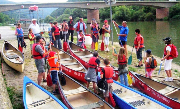 Abenteuer auf dem Neckar (Foto: privat)(bro) (wf) "Oberkanute" Hubert Göhrig hatte die sieben Kanadier beim diesjährigen Schönbrunner Ferienprogramm wieder voll im Griff. Ausgestattet mit Schwimmwesten, wasserdichten Tonnen und einer Paddel- und Sicherheitsunterweisung machten sich die Kinder vom Eberbacher Neckarlauer aus auf die erste Etappe. Bis zum Anlegeplatz hinter Pleutersbach konnten die ersten Erfahrungen mit dem weitgehend unbekannten Sport gesammelt werden. Dann galt es, die erste Schwierigkeit zu überwinden. Zum Zwischenstopp konnte nicht der aus den Vorjahren bekannte, leicht zu erreichende Platz am rechten Ufer angefahren werden. Die sieben Betreuer, darunter auch Bürgermeister Jan Frey, meisterten das Anlagemanöver am recht steilen Hang mit Bravour und vertäuten die Boote hintereinander. Der Provianttross, unterstützt von Bürgermeister a.D: Roland Schilling, gab Ausstiegshilfe und bewirtete die Gäste mit Brötchen, Brezeln, Süßigkeiten und Säften. Frisch gestärkt konnten die Paddler dann die Naturschönheiten und Wellen bis Hirschhorn genießen. Die nächste Herausforderung war das Einfahren in die Schleusenkammer. Nach dem Absinken ging es mit Schwung an den Anleger. Ein letzter Kraftakt war das Verladen der Boote auf den Hänger. Zur Entspannung und Abschluss gab es dann noch ein Eis im Gasthaus Röss’l.