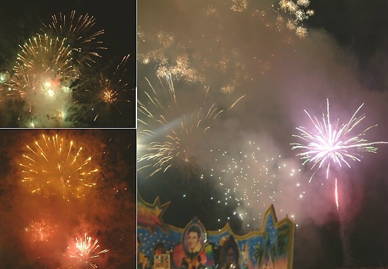 Obgleich der Himmel gestern Abend seine Pforten zeitweise kräftig geöffnet hatte war noch einmal Hochbetrieb auf dem Kuckucksmarkt. Pünktlich zum letzten "Highlight" des Kuckucksmarktes hatte Petrus aber ein Einsehen und die Zuschauer konnten ohne störende Regenschirme das Feuerwerk über dem Festplatz genießen.
