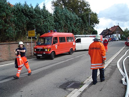 Durch die in der Scheune gelagerten Heuballen brannte das Gebäude lichterloh. Kurz nach Eintreffen der ersten Feuerwehrkräfte stürzte der Dachvorsprung der Scheune auf die Straße. Ein Giebel drohte auf ein benachbartes Gebäude zu fallen. Er wurde im Laufe des Einsatzes mithilfe eines Baggers und eines Forstschleppers kontrolliert abgetragen. Heu wurde aus der Scheune gebracht und auf eine Wiese zum Nachlöschen tranportiert. Um alle Brandnester zu erreichen, musste das Gebäude während der Löscharbeiten bis auf die Grundmauern abgetragen werden. Auch landwirtschaftliche Geräte in der Scheune wurden zerstört.