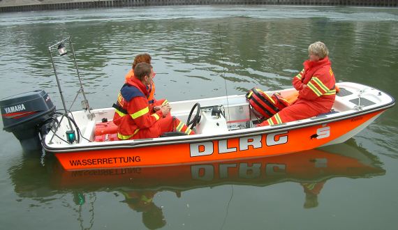 228 Einzelstarter und 25 Staffeln am Start Das DLRG-Boot wartet auf die Schwimmstarter. (Foto:Wörner)