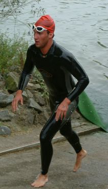 228 Einzelstarter und 25 Staffeln am Start Der erste Schwimmer (Staffel 312) steigt aus den Fluten. (Foto:Wörner)