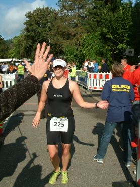 Nach der Radstrecke, die ebenfalls wieder an der Wechselzone endete, ging es nach dem Anziehen der Laufschuhe auf die sechs Kilometer lange Laufstrecke wieder in Richtung Pleutersbach. Am Bolzplatz wurde gewendet und weiter zum Ziel zurück vor die DLRG-Station. Als Erster kam, wie sich nach dem Radfahren schon abzeichnete, Johannes Moldan mit einer Gesamtzeit von 1 Stunde 5 Minuten und 53 Sekunden ins Ziel.