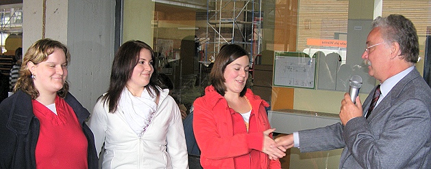 Für das soziale Miteinander am HSG Lisa Morr, Julia Deschner und Tanja Sauer (v. re.) wurden von Oberstudiendirektor Helmut Schultz geehrt. (Foto: privat) (bro) (pm) Seit dem Jahr 2005 engagieren sich die Schülerinnen der 13. Klasse Lisa Morr, Julia Deschner und Tanja Sauer in der Streitschlichtungs-AG für das soziale Miteinander am Hohenstaufen-Gymnasium Eberbach. Nachdem sie sich in Wochenendseminaren zu Schülermediatoren haben ausbilden lassen, setzen sie sich für die friedliche Konfliktlösung bei den Unterstufenschülern ein und werden dabei mittlerweile von anderen Schülern aus unteren Klassen unterstützt.