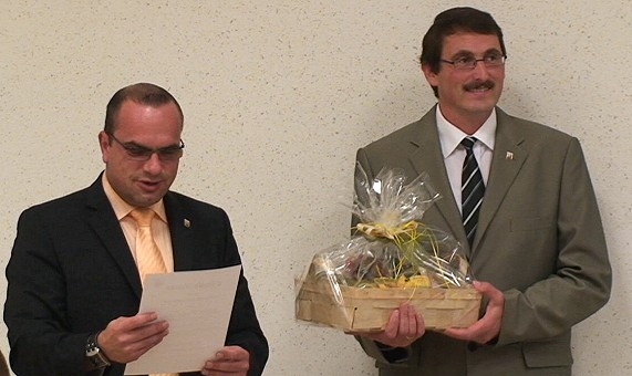 Zunächst ehrte Bürgermeister Jan Frey den Verwaltungsangestellten Roger Fink für 25 Jahre Tätigkeit im öffentlichen Dienst. Nahezu die ganze Zeit war Fink für die Gemeinde Schönbrunn tätig, unter anderem als Standesbeamter, aber auch in vielen anderen Verwaltungsbereichen. Derzeit ist Fink in der Hauptverwaltung zuständig für EDV sowie für die öffentliche Sicherheit und Ordnung.