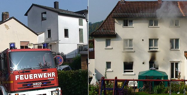 Feuerwehr hatte zwei Einsatzorte gleichzeitig - drei Personen verletzt In Neckarwimmersbach (l.) und in Eberbach-Nord (r.) brannte es heute gleichzeitig. (Fotos: Hubert Richter)Mehr Bilder (Klicken zum Vergrößern):