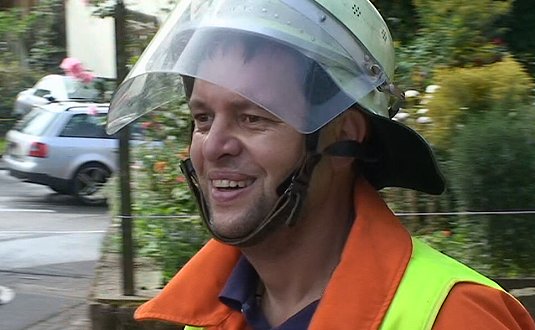 Simulierter Scheunenbrand - Verletzte gerettet und Schlimmeres verhindert Zufriedener Einsatzleiter nach der Übung: Thomas Wolf. (Foto: Hubert Richter)Mehr Bilder (Klicken zum Vergrößern):