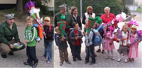 Am Dienstag suchte Bernd Grimm, Jugendsachbearbeiter des Eberbacher Reviers, den Kontakt zu den neuen Erstklässlern und deren Eltern. Er machte die Kinder auf besondere Gefahren im Straßenverkehr aufmerksam. Die Eltern erinnerte Grimm an das richtige Verhalten, wenn sie ihre Kinder zur Schule bringen oder sie abholen. So sei es beispielsweise verboten in die Bushaltestelle vor der Hauptschule in der Steige zu fahren um dort die Kinder aussteigen zu lassen. Ebenso solle man Schüler nicht vor der roten Ampel "schnell mal eben" aus dem Auto springen zu lassen.