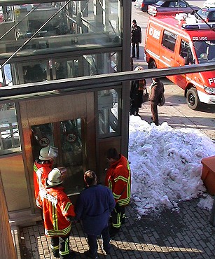 Am Bahnhof hat der Notfall Tradition (Foto: Claudia Richter)(cr) "Traditionell" ist nach landläufiger Meinung etwas, das mindestens dreimal stattgefunden hat. In diesem Sinne haben die Einsätze der Eberbacher Feuerwehr zur Befreiung von Fahrgästen in den Aufzügen am Bahnhof auch Tradition. Gestern war es mal wieder soweit.