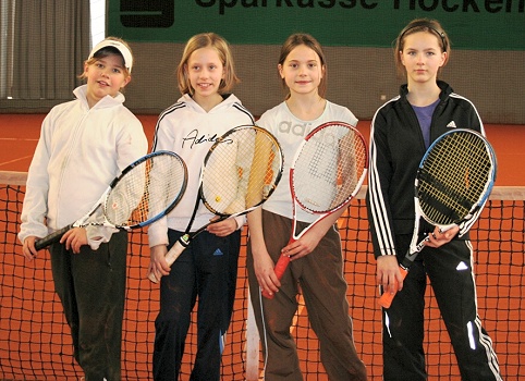 Aufstieg in die erste Bezirksliga V.l.: Sophia Wessely, Federica Thomson, Rachel Sittig und Helena Ritsert. (Foto: privat)(bro) (jsch) Die Juniorinnen U12 des Eberbacher Tennisclubs sind nach der Winterhallenrunde in die erste Bezirksliga aufgestiegen. Federica Thomson, Helena Ritsert, Rachel Sittig und Sophia Wessely besiegten den TC Ziegelhausen mit 5:1, den Heidelberger TC 2 mit 6:0 und den TC Hockenheim mit 5:1 und wurden damit Gruppensieger.
