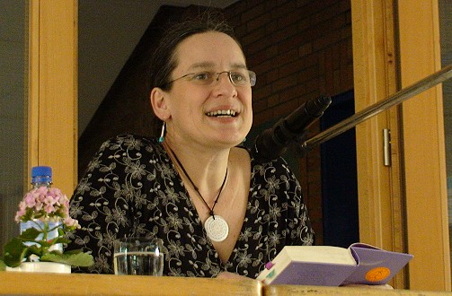Die Schriftstellerin, deren besonderes Interesse der heutigen Situation der Indianer in Nordamerika sowie deren Kultur und Geschichte gilt, las am Vormittag aus ihren Jugendbüchern "Libellensommer" und "Lakota Moon", in denen über das Leben von und mit Indianern berichtet wird. Etwa 200 Schülerinnen und Schüler aus den fünften bis achten Klassen kamen in die Aula, hörten interessiert der Lesung zu und hatten im Anschluss zahlreiche Fragen an die Autorin. Außerdem hatten die jungen Leser nach der Veranstaltung die Möglichkeit ihre Babendererde-Bücher von der Schriftstellerin persönlich signieren zu lassen.