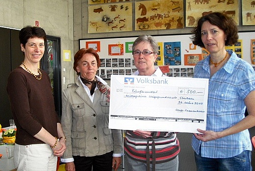 500 Euro für den Mittagstisch in der Steige-Grundschule (Foto: privat)(bro) (as) Im November letzten Jahres fand der Adventsbasar des Handarbeitskreises im Foyer des evangelischen Gemeindehauses in Eberbach statt. Viele fleißige Hände hatten im Laufe des Jahres gestrickt, gehäkelt, genäht und gebastelt. Der Verkaufsschlager war wieder der Gesangbuch-Engel. Er wurde 375-mal verkauft. Aber auch Eierwärmer, Tischsets, Socken, Gästehandtücher mit Häkelspitze, Holzarbeiten und vieles mehr fanden ihre Abnehmer.