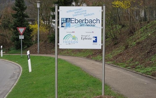 Hinweise auf Partnerstädte in neuem Design (Foto: StVE)(hr) (stve) An den Ortseinfahrten der Stadt Eberbach sind die in die Jahre gekommenen Partnerstädteschilder erneuert worden.