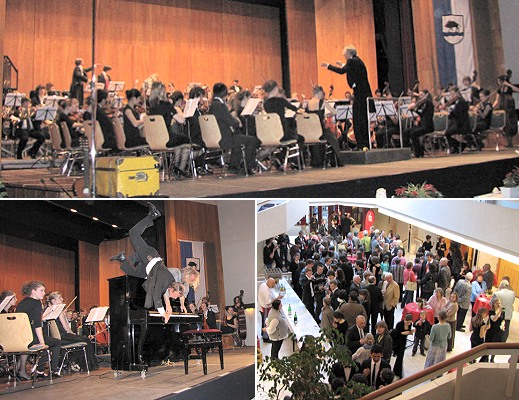 Klassische Musik auf höchstem Niveau gepaart mit Akrobatik und Gaudi (Fotos: Gustel Mechler)(aum) Feiner Zwirn in den ersten Reihen, jede Menge neugierige Erwachsene und Kinder dicht an dicht dahinter und auf der Empore. Klassische Musik auf höchstem Niveau, mitreißend dargeboten: Das Landesjugendorchester Baden Württemberg machte am Samstag Station in Eberbach.