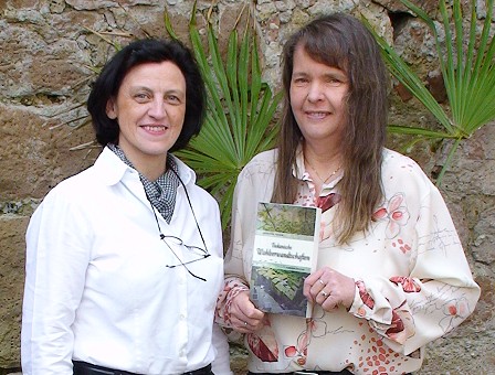 Literarische Reise durch Neckartal und Toskana V.l.:Birgit Strohauer-Valerius und Heiderose Teynor mit dem ersten Kriminalroman.(Foto: Claudia Richter)(cr) Am morgigen Freitag, 23. April, lädt Birgit Strohauer-Valerius zu einer Lesung unter dem Motto "Krimilesen, Kaffeklatsch und Viktoriatorte" in das Café Viktoria ein.