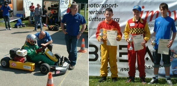 Gelungener erster Tag beim Rennwochenende des MSC Eberbach Lukas Friedrich am Start zu seinem Wertungslauf. Die Sieger im 2. Lauf der Klasse 1. (Fotos:Wörner)(tw) Beim Rennwochenende des Motorsportclub Eberbach in der Au fanden heute bei herrlichem Sonnenschein die Läufe im 9 PS Superkart statt. Mit von der Partie waren auch einige Fahrer des MSC Eberbach, darunter Lukas Friedrich, der im vergangenen Jahr in der Klasse U14 Deutscher Meister war.