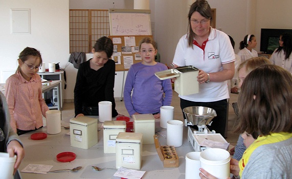 Zum wiederholten Mal durfte eine Grundschulklasse in der Region zum Thema "Wiegen" neben zwei praktischen Teilen, in dem auf einer Teewaage nach Rezeptur eine Teemischung und durch genaues Arbeiten eine Salbe angefertigt wurde, auch die verschiedenen Räume und die Arbeitsabläufe in einer Apotheke kennen lernen.