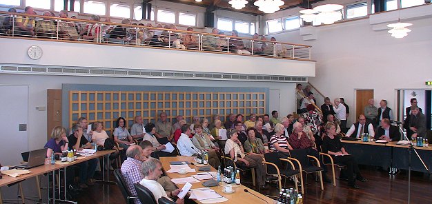 Es darf mehr geblitzt werden So viele Besucher wie selten fanden sich am vergangenen Donnerstag zur Gemeinderatssitzung ein. Die meisten gingen aber bereits nach Behandlung der Bauvoranfrage zum Dr.-Schmeißer-Stift wieder (wir berichteten). (Foto: Hubert Richter)(hr) Erheblich verstärken wird die Stadt die Geschwindigkeitsmessungen auf den Gemeindestraßen. Der Gemeinderat beschloss am vergangenen Donnerstag die Erhöhung der Mindest-Messstunden pro Jahr von 150 auf 250. Die AGL-Fraktion hatte in der Gemeinderatssitzung am 25. März eine Ausweitung der Messungen, auch auf die Abendstunden, angeregt. Ein entsprechender Vertrag mit einer Messfirma aus Eberstadt läuft seit 1. Mai auf die Dauer von drei Jahren.
