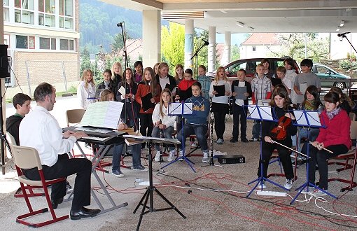 Kurzweilige Unterhaltung beim HSG-Frühschoppen Von Carl Orff bis Bette Midler mit Chor und Orchester der Klassen 5 und 7. (Foto: Wörner)Mehr Bilder (Klicken zum Vergrößern):