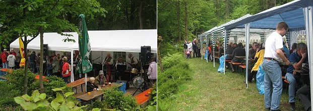 Wo man singt, da lass dich ruhig nieder... (Fotos: Nicole Kolbe)(ko) Getreu diesem Motto fanden sich heute den ganzen Tag über immer wieder Wanderer beim traditionellen Waldfest des MGV Concordia auf deren Hütte in Neckarwimmersbach ein. Das Fest begann mit einem ökumenischen Gottesdienst, der von den Mitgliedern des Chors musikalisch umrahmt wurde und den Dekanin Hiltrud Schneider-Cimbal ein letztes Mal abhielt, bevor sie im Sommer Eberbach verlässt.