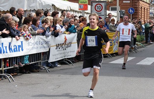 Bestes Laufwetter und neuer Streckenrekord beim CH-Alpha-Frühlingslauf Hat Bürgermeister Bernhard Martin hinter sich gelassen: Halbmarathonläufer Philip Mayer. (Foto: Mauritius-Thaddaeus Schell)Mehr Bilder (Klicken zum Vergrößern):