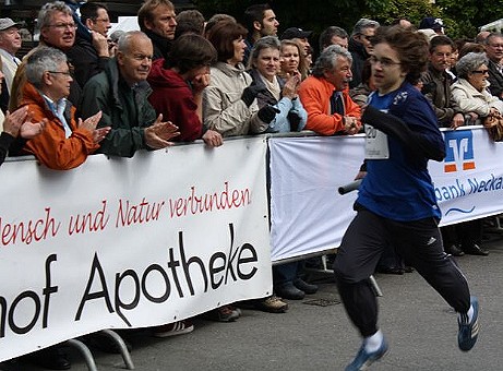 Bestes Laufwetter und neuer Streckenrekord beim CH-Alpha-Frühlingslauf Lukas Körmös, Sieger im offenen Staffellauf über 3x700m, beim Zieleinlauf. (Foto: Mauritius-Thaddaeus Schell)Mehr Bilder (Klicken zum Vergrößern):