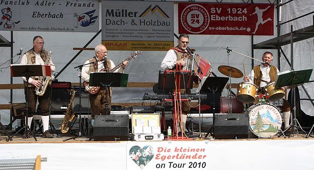 Gut besucht trotz durchwachsenem Wetter Musik zum Mitschunkeln: die „Kleinen Egerländer“ beim Frühschoppen am heutigen Sonntag auf dem Leopoldsplatz. (Foto: Mauritius-Thaddaeus Schell)Mehr Bilder (Klicken zum Vergrößern):