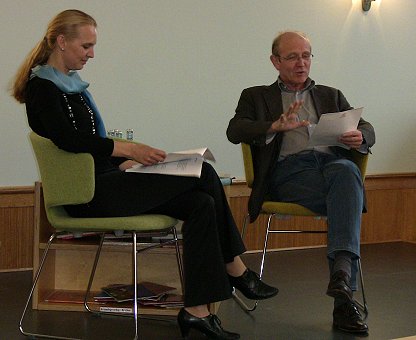 Nur wenige Neugierige kamen und hörten den Beiden beim Vorlesen oder Vortragen von Romanauszügen, Essays, Erzählungen oder Gedichten rund um das Leben mit, am oder auf dem Neckar zu. "Wir machen eine Flussfahrt" versprach Vogel zu Beginn der Veranstaltung und er nahm zusammen mit Frank-Osterhild die Gäste nicht nur auf eine landschaftlich imposante Reise entlang des Neckars mit, es war auch eine Reise in die verschiedensten Zeitepochen. Eindrucksvoll waren Werke von Hölderlin, Goethe oder Mark Twain zu hören. Auch "s´ Äffle und s´ Pferdle" oder Kommissar Bienzle kamen bei den Neckargeschichten nicht zu kurz. Und wer kann sich Geschichten über den Neckar ohne Liebeslyrik vorstellen - man denkt dabei nur an Heidelberg oder an die vielen Barock-, Renaissance- und Rokokoschlösser?