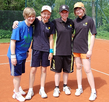 Heimsieg für die Tennis-Juniorinnen des TCO Beerfelden V.l.: Saskia Kleiber (Pkt. 1), Inez Thomson (2), Carolin Breimer (3) und Sara Keller (4). (Foto: privat)