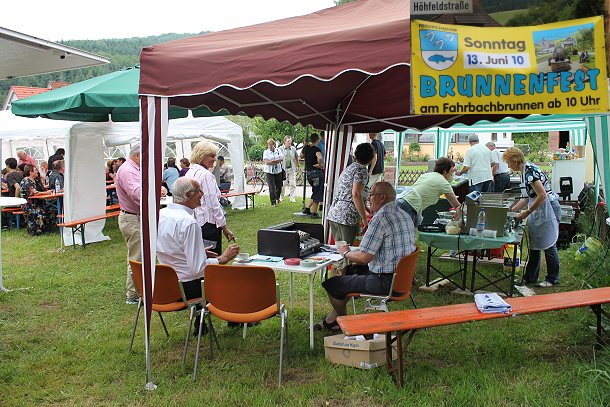 Gemütliches Dorffest des Heimat- und Verkehrsvereins (Foto:Wörner)(tw) Zum 13. Mal feierten heute am 13. Juni die Friedrichsdorfer ihr Brunnenfest. Festplatz war wie üblich die Wiese beim Spielplatz am Fuß der Katholischen Kirche, unweit vom Fahrbachbrunnen.