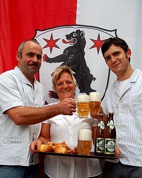 Aufgesattelt zum 110. Beerfelder Pferde-, Fohlen- und Zuchtviehmarkt "Wir sind Beerfelden…!" Die Metzgerfamilie Sattler spricht eine deutliche Sprache, wenn es um die Einladung zum Pferdemarkt geht. (Foto: privat) (bro) (mng) Mit seiner wohlgeratenen Mischung aus Kirmes, Kleinkunst und Tierschau ist der Pferde-, Fohlen- und Zuchtviehmarkt in Beerfelden etwas Besonderes. Ab Freitag, 9. Juli, bis Montag, 12. Juli, werden Fahrgeschäfte, Reit- und Springturniere, eine Gewerbeschau, Musik und Kabarett die Gäste unterhalten. Schließlich und endlich führen die Wege in die Professor- Walter-Hofmann-Halle, die von der Metzgerfamilie Sattler bewirtschaftet wird. Kochkäse, Handkäse und allerlei Deftiges kommen auf den Tisch.