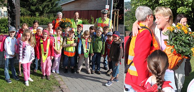 Sicher zur Schule ohne Räder (Fotos: Renate Dengel)(rd) Der "Laufende Schulbus" ist ein mit Begeisterung angenommenes Schülerbegleiter-Projekt für Erstklässler aus Wimmersbach.