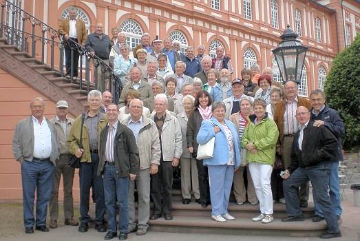 Sonne und gute Laune beim Ausflug des MGV Liederkranz Die Reisegruppe des MGV Liederkranz am Wiesbadener Schloss. (Foto: privat)